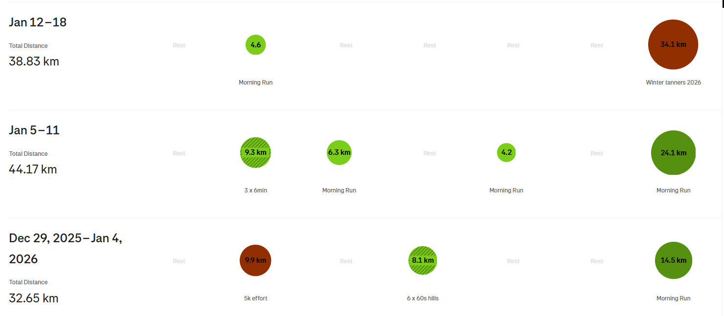 My main goal for 2025 was to hit a sub-20 5k, and I just got this by one second on December 30. This did not leave me with a lot of time to switch up training before the Tanners on January 18.