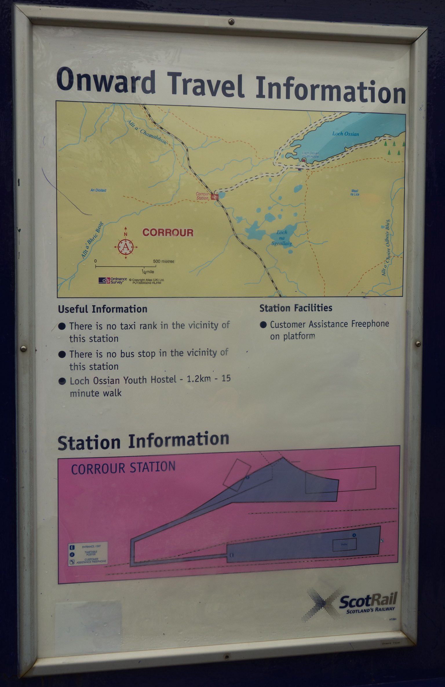 Changed train at Glasgow and on to Corrour. By this stage we were all nervous about stepping off: weather forecast was terrible, the packs were really heavy and we had a fair way to go before dark, but we did step off to be greeted by this fantastic sign at Corrour station: