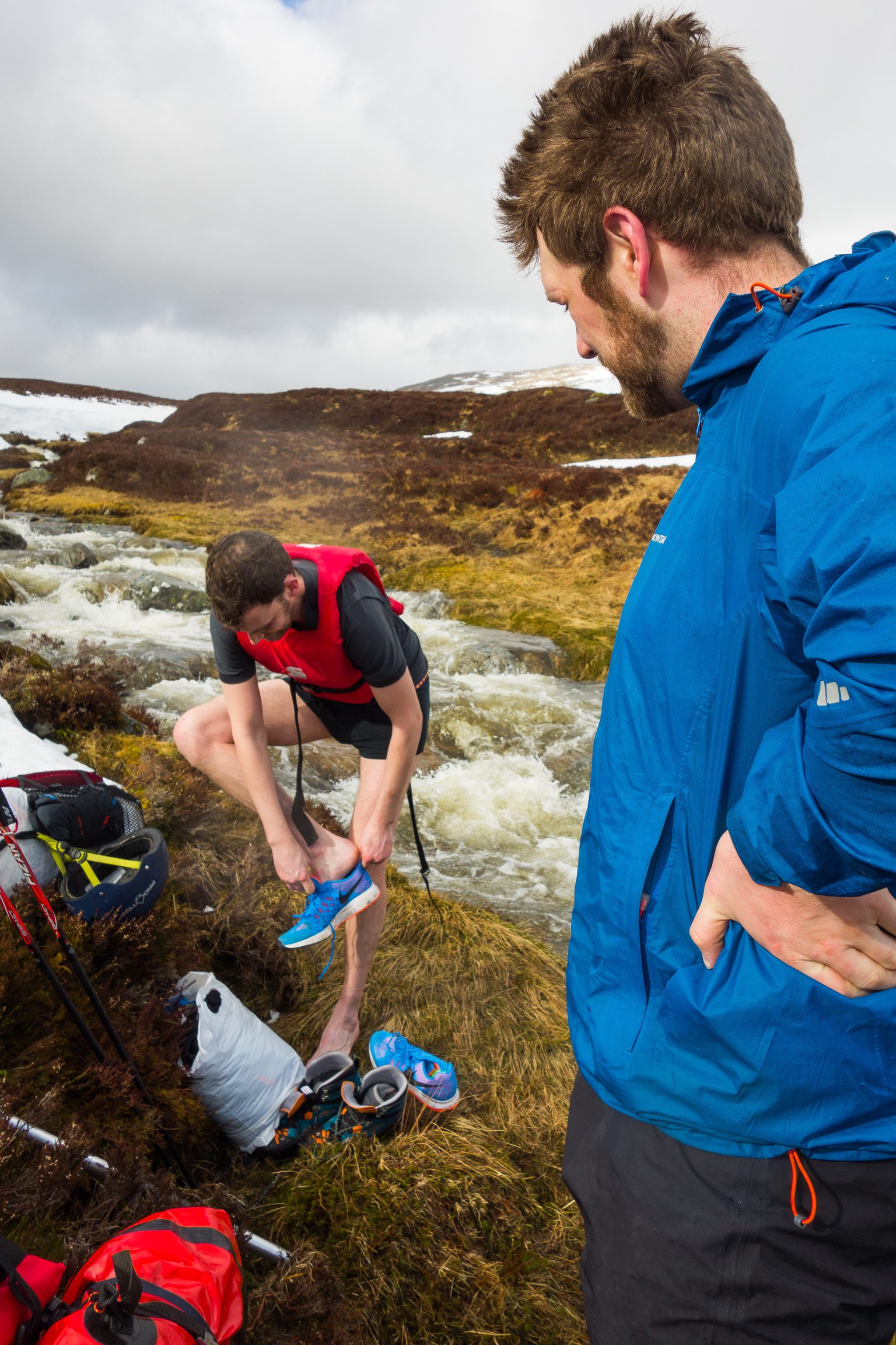 The original plan for the day had been to head round to the east out of the Lairig Ghru, towards Derry Lodge but we’d learnt that the bridge there had been washed away and fording rivers at the start of the trip had been a real hassle. So instead we decided to follow the pass down towards White Bridge and then across to the Linn of Dee. The walk would be less interesting and challenging but definitely doable, unlike the original plan. Hopefully after the Linn somewhere the river would be high enough for us to get the boats out and float down towards Braemar.