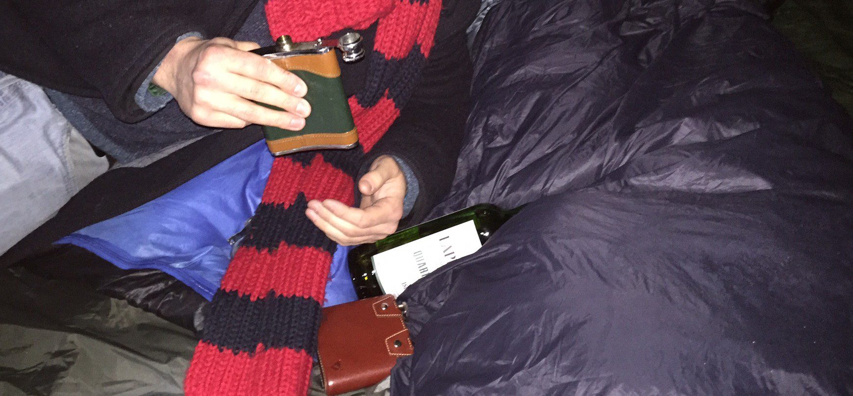 After drinking a fair amount of whisky and realising we still had to go to work in the morning we got into our bags. It took a bit of sorting to get in and snug but I was then warm for the whole evening, wearing a lot of merino and sleeping in my silk liner inside my bag, inside my bivvy bag. I woke up a few times during the night but on the whole was warm and comfortable. Tad on the other hand had a worse night – doing this in -4 temperatures does need some more serious gear than what you can borrow from your girlfriend.
