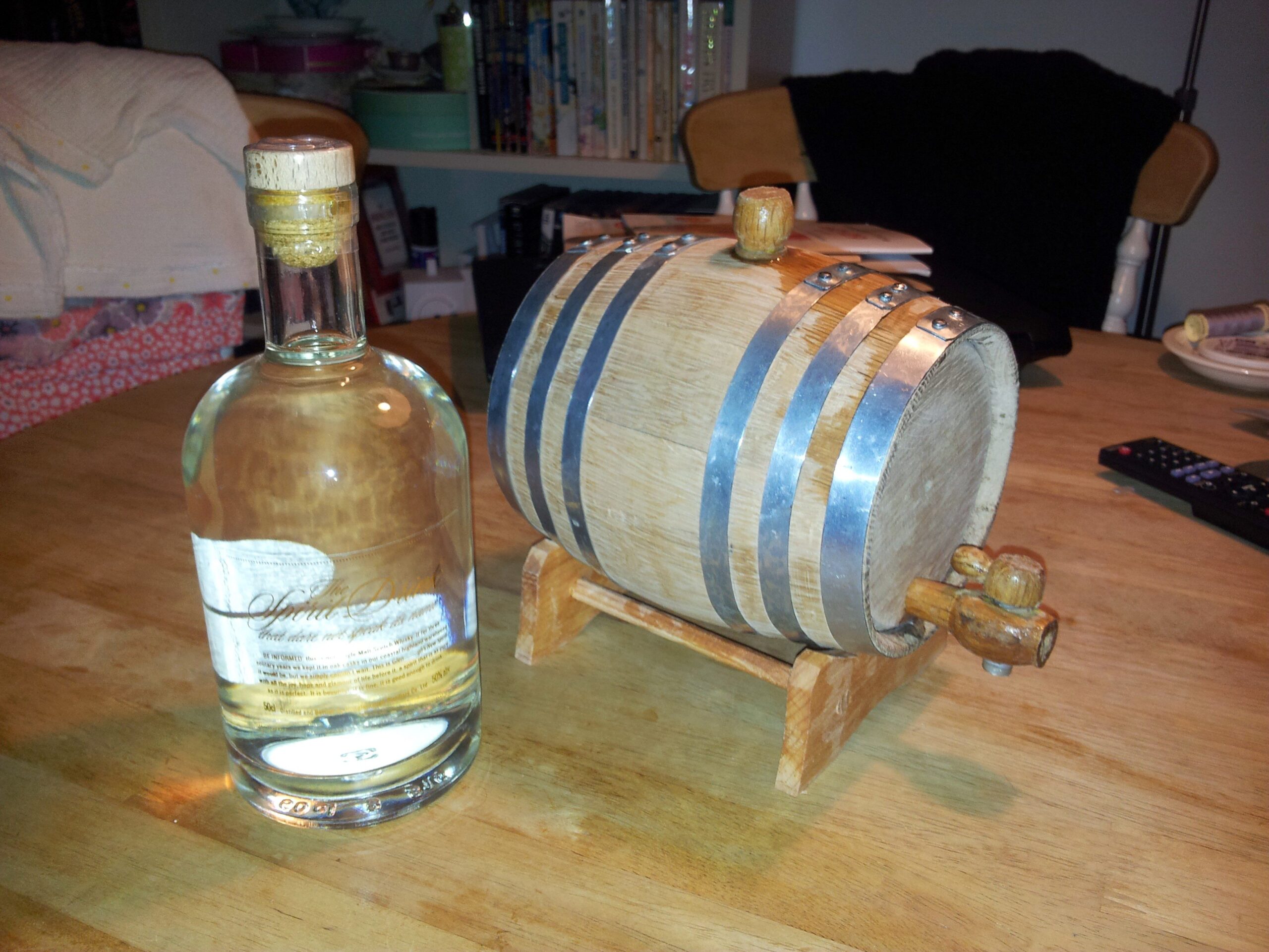 We then sat down to enjoy the outdoors and some whisky. Top marks here went to Tad for bringing a bottle of Laphroaig Quarter Cask – an excellent whisky. I had in my split hip flask some Ardbeg Uigeadail and some new make spirit from Glenglassaugh which I had aged for a month or so in a very small cask.